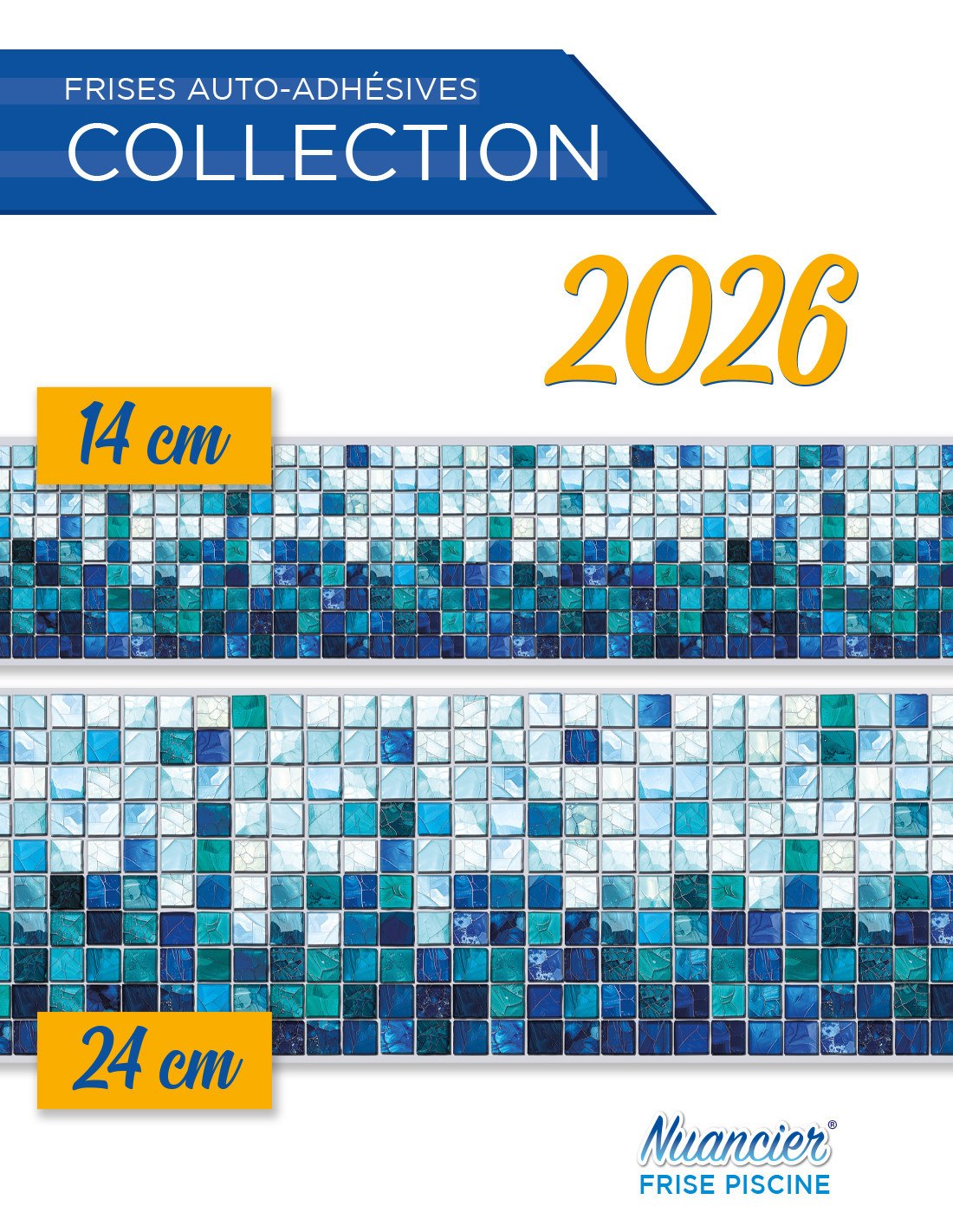 Venduto in rotoli da 5 metri, è disponibile in altezze di 14 cm o 24 cm. Queste strisce colorate con motivi ispirati al mosaico non presentano texture o rilievi.